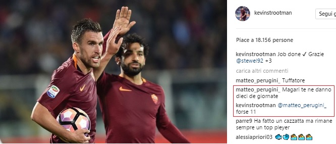 Instagram, Strootman risponde a un tifoso: "Magari mi danno 10 giornate? Forse 11". FOTO!