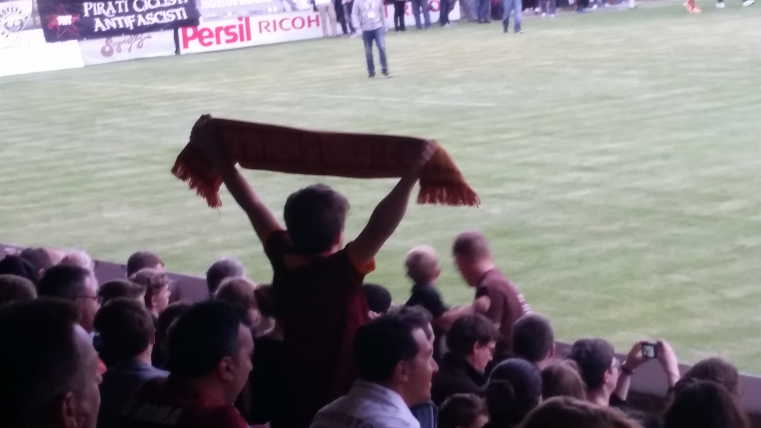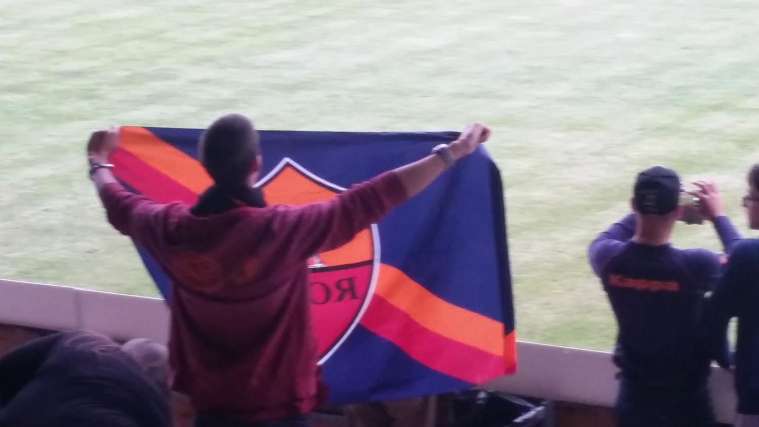 Ore 18:32 - Entra in campo la Roma per effettuare il consueto riscaldamento pre-gara. Il pubblico l'accoglie con un boato.