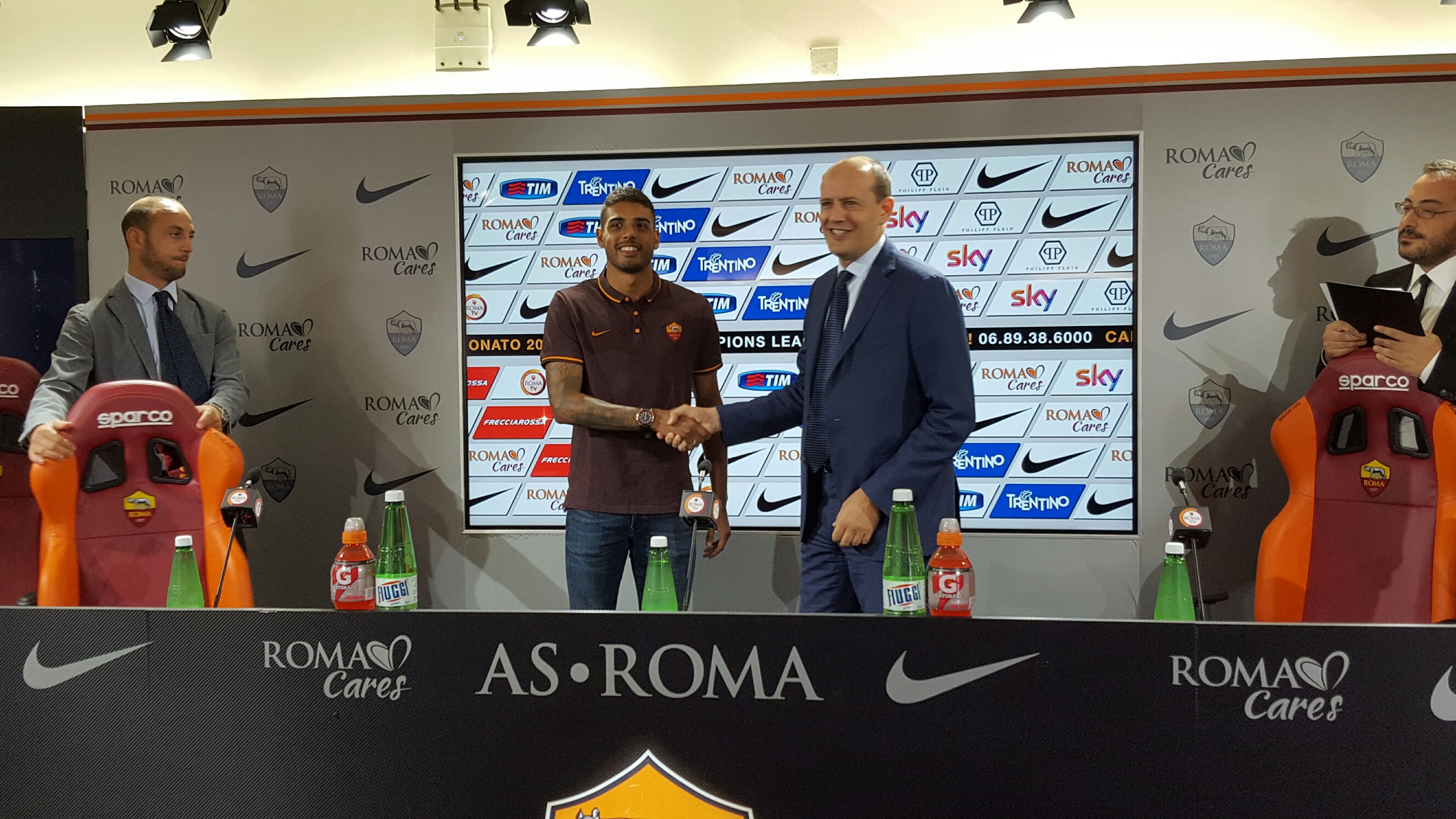 Prende la parola il DG Mauro Baldissoni: "Siamo molto contenti di presentare Emerson Palmieri. E' sempre una soddisfazione avere giovani talenti, lo abbiamo visto già all'Olimpico con il Palermo. Lo vedremo all'opera soltanto in campionato e non in Champions, per via delle restrizioni a voi note. Ma apprezzeremo le sue qualità in campo".