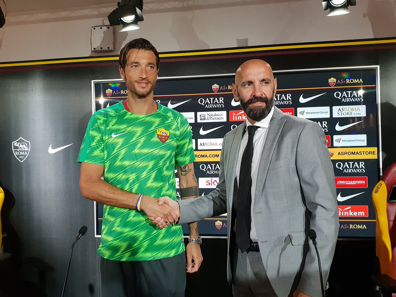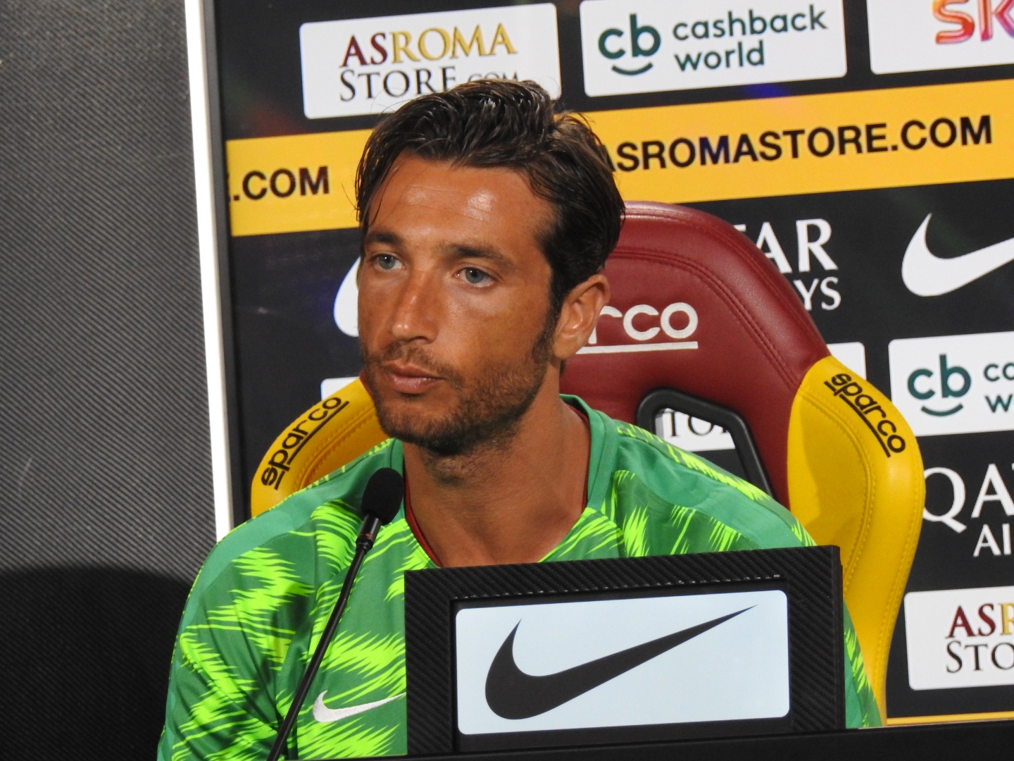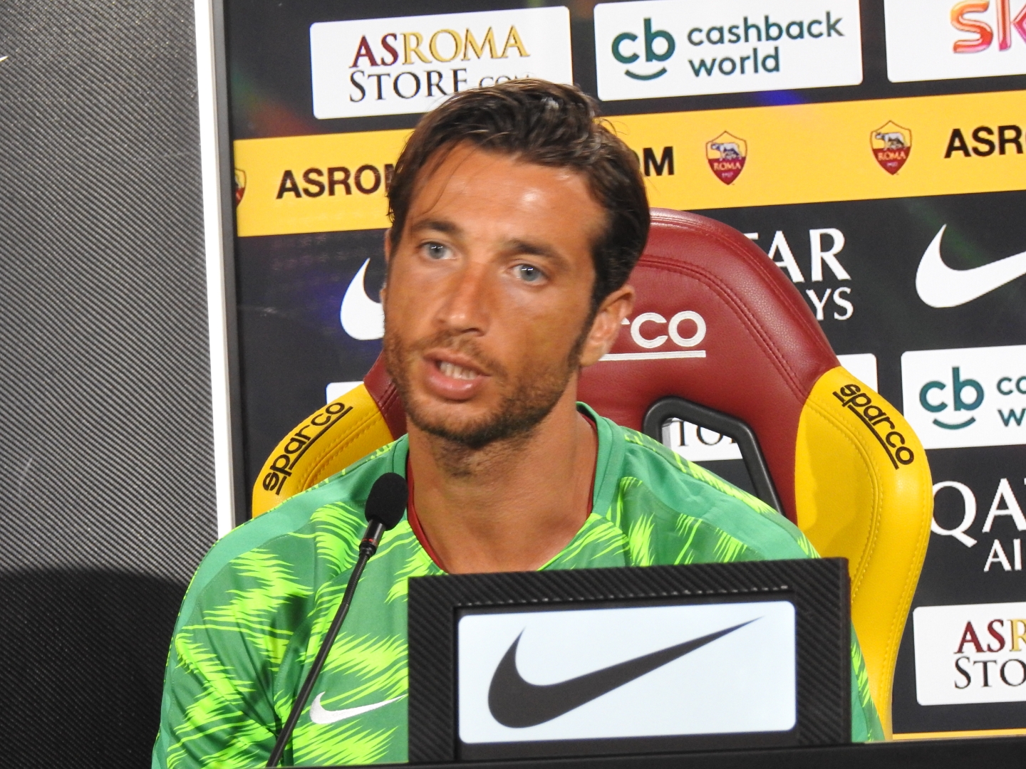 "Non lo so, guardando quello che ha fatto credo poco e niente. In me potrà trovare un compagno con cui confrontarsi, con tanta esperienza in Serie A, dubito che ne abbia bisogno ma ci sono momenti in cui c'è bisogno di una spalla e posso esserlo. Allo stesso tempo ho 35 anni ma non è sinonimo di vecchiaia. So quello che devo fare qua, so anche che devo lavorare per la Roma e questo mi fa avere l'ambizione di lavorare bene".