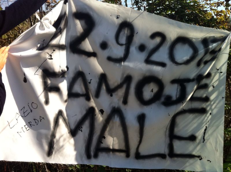 10.35 - Giallorossi ancora negli spogliatoi. All'ingresso di Trigoria piazzato uno striscione: "22 settembre 2013, famoje male".