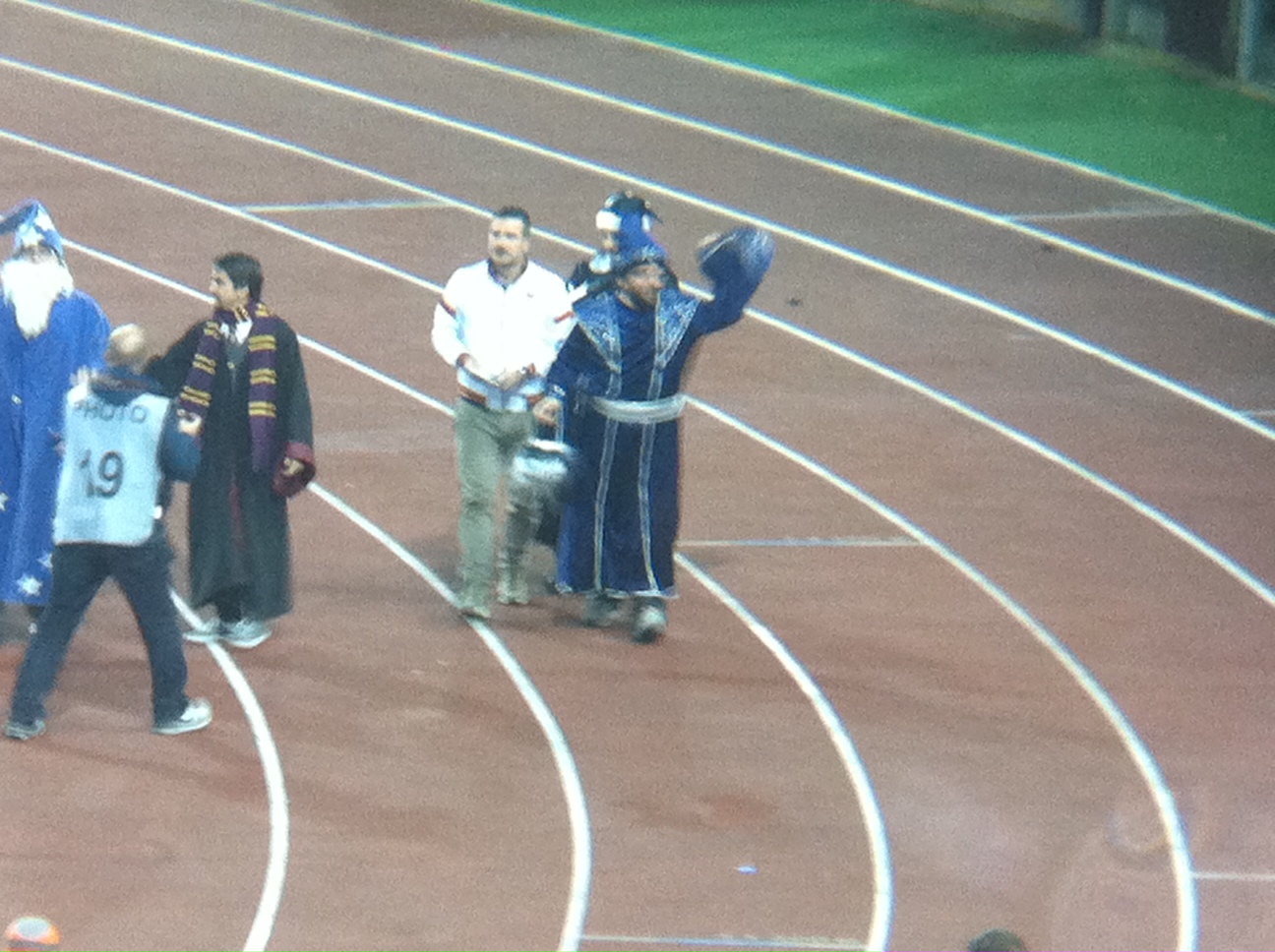 Nei giorni scorsi è uscita la notizia in merito a una conversazione tra il presidente della Lazio, Claudio Lotito, e il presidente del Napoli, Aurelio De Laurentiis. Il numero uno biancoceleste avrebbe spiegato i successi della Roma con alcuni maghi che la società giallorossa avrebbe ingaggiato per portare la buona sorte dalla propria parte. Il club giallorosso ha risposto con ironia, facendo entrare in campo a fine gara cinque maghi (oggi è anche la notte di Halloween) che hanno festeggiato sotto la Curva Sud la vittoria della Roma contro il Chievo.